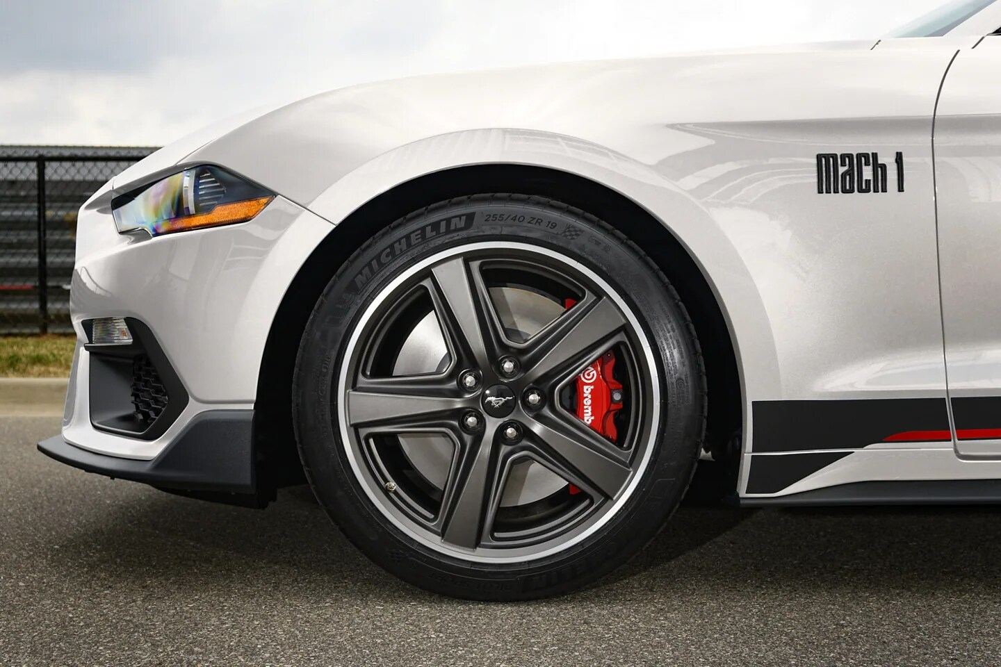Mach 1 performance is evident even before you get behind the wheel. Its streamlined design and styling cues include new front fascia and grille for both improved cooling and aerodynamics. Plus, low-gloss Magnetic and Black accents as well as hood and body-side stripes evoke Mach 1 heritage dating back more than five decades. Inside, comfortable and conforming RECARO® cloth sport seats support you while a Mach 1 IP badge with a unique chassis number complements the distinctive look and feel of the Mustang Mach 1.