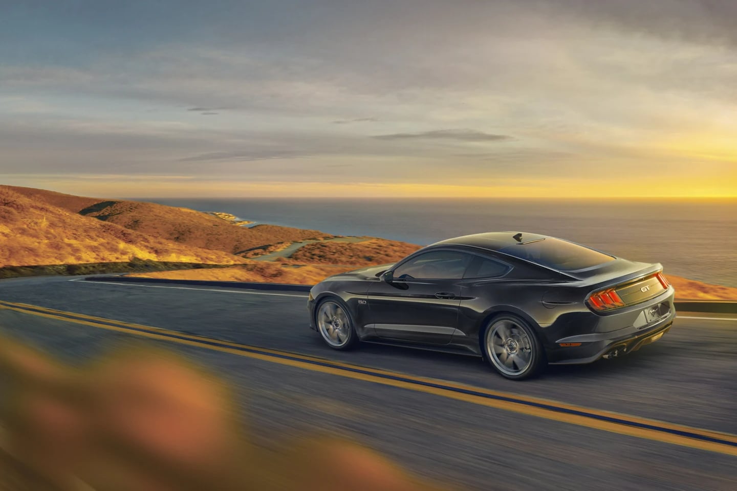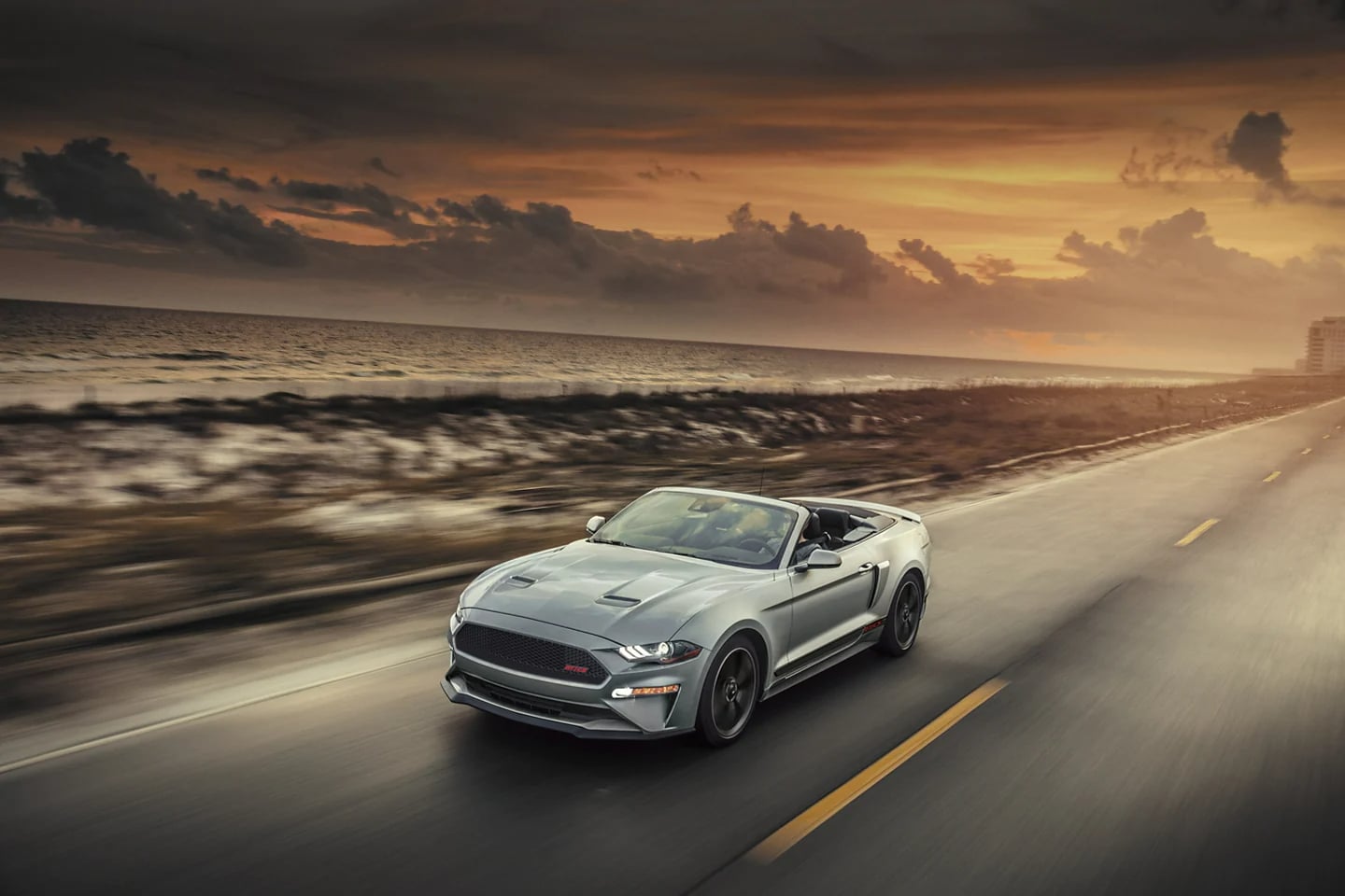 Classic side scoops and special badging mark this legendary limited edition Mustang GT Premium. Powered by a robust 5.0-liter V8, its 6-speed transmission* ensures smoother, more spirited day-to-day driving while the accessible manual mode thrills enthusiasts. It has a class-exclusive quad-tip fully variable active valve performance exhaust, 19-inch machined-face aluminum wheels and more to create a real California dream.