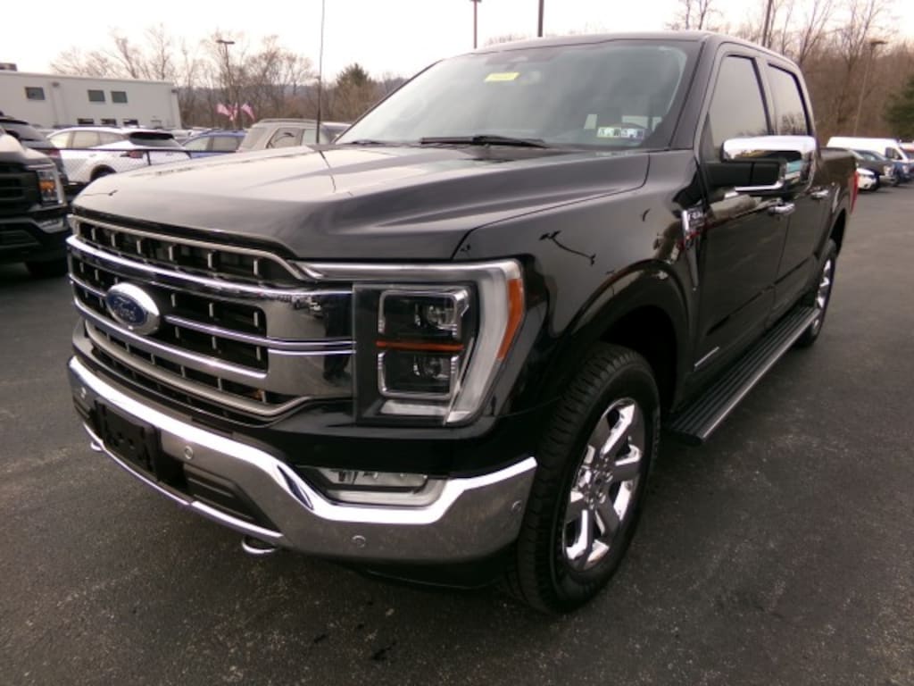 This 2022 Ford F-150 Lariat CrewCab 4x4 with a clean CarFax is finished in Agate Black Metallic and features a Black and Medium Dark Slate leather-trimmed bucket seat interior with tray-style floor liners and a convenient interior work surface. Powered by a 3.5L PowerBoost full-hybrid V6 engine paired with a hybrid electronic 10-speed automatic transmission, it delivers efficient performance with strong towing and payload capability. The truck rides on 20-inch chrome-like PVD wheels with 275/60R20 all-terrain tires and includes Pro Power Onboard, power-deployable running boards, a twin-panel moonroof, and the Lariat Chrome Appearance Package. Equipped with the FX4 Off-Road Package, Ford Co-Pilot360 Active 2.0, and the Tow Technology Package, this F-150 Lariat CrewCab combines luxury, technology, and rugged capability, making it ideal for work, adventure, or daily driving. WHEELS: 20" CHROME-LIKE PVD PRO POWER ONBOARD TRANSMISSION: HYBRID ELECTRONIC 10-SPEED AUTOMATIC TWIN PANEL MOONROOF LARIAT CHROME APPEARANCE PACKAGE AUTO START-STOP REMOVAL ENGINE: 3.5L POWERBOOST FULL-HYBRID V6 BLACK W/MEDIUM DARK SLATE, LEATHER-TRIMMED BUCKET SEATS POWER-DEPLOYABLE RUNNING BOARDS EQUIPMENT GROUP 502A HIGH Heated Rear Seat(s) Variable Speed Intermittent Wipers Integrated Turn Signal Mirrors HD Radio Chrome Wheels Navigation System Power Mirror(s) Heated Steering Wheel Cruise Control Steering Assist Intermittent Wipers Universal Garage Door Opener Heated Mirrors Daytime Running Lights Adaptive Cruise Control AM/FM Stereo Adjustable Steering Wheel LED Headlights Evasion Assist *Satellite Radio Tow Hooks Premium Sound System Power Folding Mirrors Requires Subscription Cross-Traffic Alert Running Boards/Side Steps Rain Sensing Wipers Front Collision Mitigation MP3 Capability TRAY STYLE FLOOR LINER PAINT: AGATE BLACK METALLIC INTERIOR WORK SURFACE TIRES: 275/60R20 BSW AT FX4 OFF-ROAD PACKAGE FORD CO-PILOT360 ACTIVE 2.0 Automatic Parking Cruise Control Steering Assist Adaptive Cruise Control TOW TECHNOLOGY PACKAGE *For third party subscriptions or services, please contact the dealer for more information.*