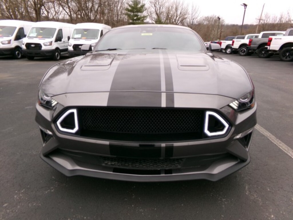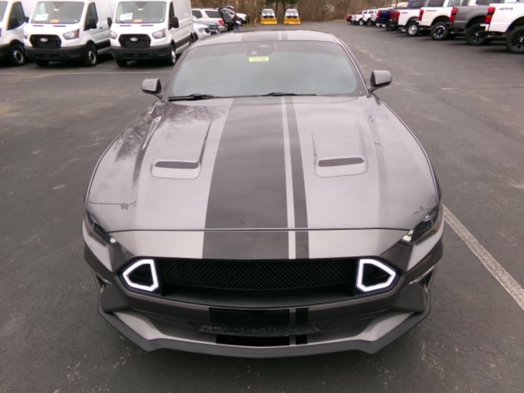 2021 Ford Mustang GT Premium in Carbonized Gray Metallic with Ebony heated and cooled leather bucket seats featuring Metal Gray stitching and color accents. Powered by a 5.0L V8 paired with a 10-speed automatic, this Mustang delivers true performance and aggressive styling with 20-inch wheels, over-the-top racing stripe, and a B&O sound system by Bang & Olufsen. A powerful, well-equipped muscle car with premium features, perfect for buyers searching for a V8 Mustang GT with performance, style, and comfort. ENGINE: 5.0L TI-VCT V8, TRANSMISSION: 10-SPEED SELECTSHIFT AUTOMATIC, WHEELS: 20" W/MINI SPARE WHEEL, PAINT: CARBONIZED GRAY METALLIC, SEATS: EBONY/METAL GRAY STITCH HEATED/COOLED LEATHER BUCKET SEATS W/COLOR ACCENTS, OVER-THE-TOP RACING STRIPE, RADIO: B&O SOUND SYSTEM BY BANG, EQUIPMENT GROUP 401A: Navigation System, Adaptive Cruise Control, Heated Steering Wheel, Seat/Mirror Memory, Integrated Turn Signal Mirrors, Floor Mats. 3.55 LIMITED SLIP REAR AXLE, ACTIVE VALVE PERFORMANCE EXHAUST, ENHANCED SECURITY PACKAGE.- *For third party subscriptions or services, please contact the dealer for more information.*