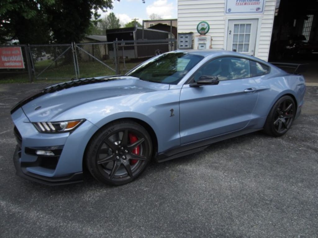 1 of 26 made with the Heritage Edition w/ black painted stripes and the Carbon Fiber Track Pack. This is available by appointment only so please make sure you call to schedule a time to see the Mustang Shelby GT500. This is not just a Mustangits an ultra-rare collector's dream. One of only 26 produced, this 2022 Ford Mustang Shelby GT500 Heritage Edition features painted over-the-top racing stripes and the highly coveted Carbon Fiber Track Pack. With a Clean CarFax and appointment-only availability, this vehicle demands the attention of true enthusiasts. Powered by a monstrous 5.2L Supercharged V8 and paired with a lightning-fast Tremec 7-speed dual-clutch transmission, it delivers blistering acceleration and world-class handling. The Carbon Fiber Track Pack includes 20-inch carbon fiber wheels with 305/30R20 front and 315/30R20 rear tires, along with a GT4-style rear wing and adjustable strut top mounts. Dressed in heritage-inspired Brittany Blue Metallic with bold painted stripes, this GT500 is as stunning as it is ferocious. Inside, Ebony Recaro leather-trimmed sport seats with Smoke Gray accents and Miko suede inserts keep you firmly planted. The Technology Package adds high-end convenience with navigation, a premium sound system, blind spot monitoring, cross-traffic alert, heated mirrors with integrated turn signals, and memory functionality. This GT500 Heritage Edition is more than a carit's a piece of Shelby history. ENGINE: 5.2L SUPERCHARGED V8, TRANSMISSION: TREMEC 7-SPEED DCT, WHEELS: 20-in EXPOSED CARBON FIBER, TIRES: 305/30R20 FRONT 315/30R20 REAR, PAINT: BRITTANY BLUE METALLIC, SEATS: EBONY W/SMOKE GRAY RECARO LEATHER W/MIKO SUEDE, PAINTED OVER-THE-TOP RACING STRIPES, GT500 HERITAGE EDITION W/PAINTED STRIPES, TECHNOLOGY PACKAGE: Navigation System, Cross-Traffic Alert, Blind Spot Monitor, Integrated Turn Signal Heated Mirrors, Mirror Memory, Premium B&O Sound System. CARBON FIBER TRACK PACK: Wheel Locks, Rear Spoiler, Tires - Front/Rear Performance. *For third party subscriptions or services, please contact the dealer for more information.*