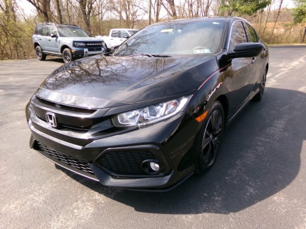 2018 Honda Civic Hatchback EX for sale in Crystal Black Pearl with black fabric seating, offering sporty styling and everyday efficiency. Equipped with chrome wheel locks and the versatile hatchback design, this Civic delivers practical cargo space, comfortable seating, and reliable performance. A sleek, fuel-efficient, and well-rounded compact car, perfect for anyone searching for a Honda Civic Hatchback EX for sale. PAINT: CRYSTAL BLACK PEARL SEATS: BLACK FABRIC SEATING SURFACES CHROME WHEEL LOCKS *For third party subscriptions or services, please contact the dealer for more information.*