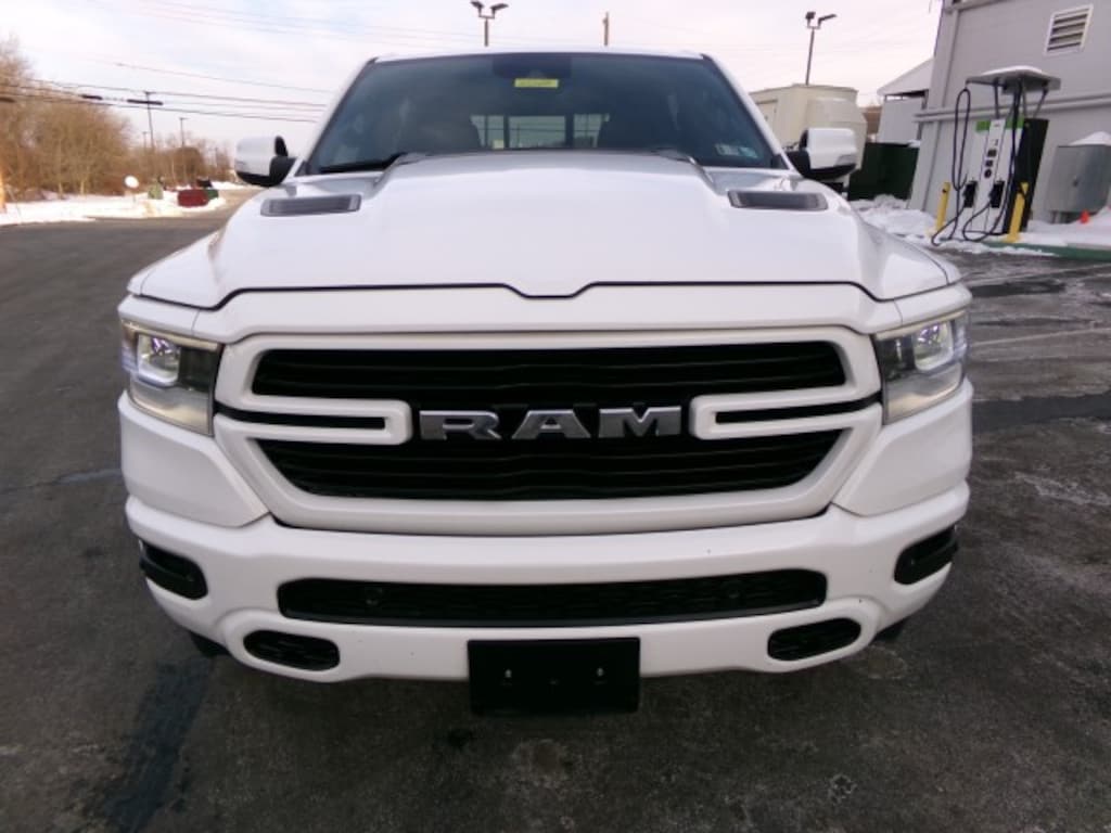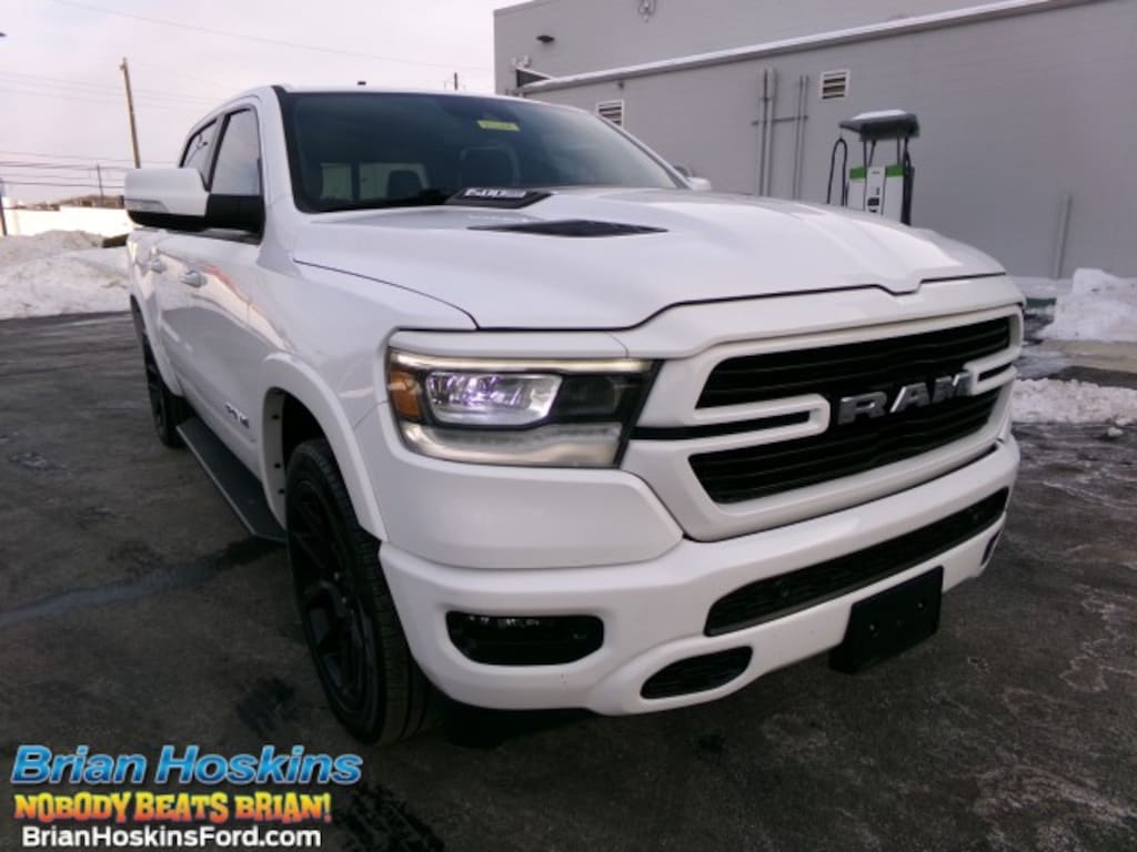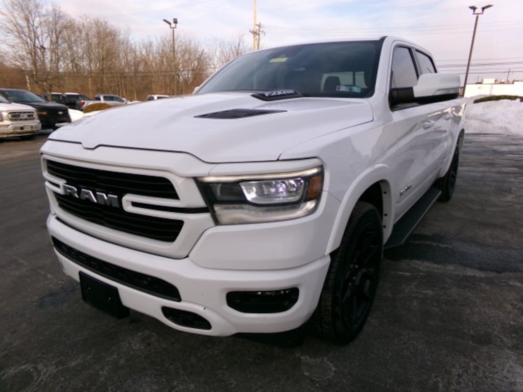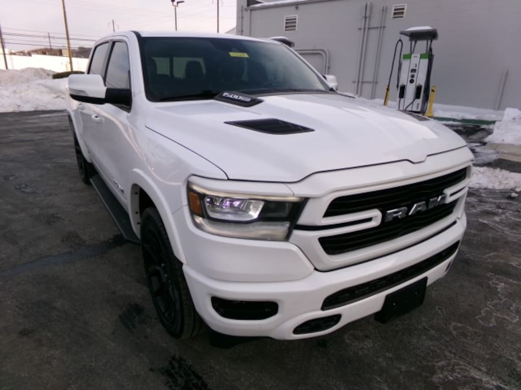 This 2022 Ram 1500 Laramie Crew Cab 4x4 is powered by a 5.7L V8 HEMI with MDS and VVT paired with an 8-speed automatic transmission, delivering strong performance and confident towing capability. Finished in Bright White Clearcoat, it rides on 20-inch wheels with 275/55R20 all-terrain tires and features a refined interior with black leather-trimmed bucket seats. Equipped with the G/T Package, Laramie Level 1 Equipment Group, and Sport Appearance Package, it includes advanced safety features such as blind spot monitoring, rear collision mitigation, cross-traffic alert, automatic high beams, and rain-sensing wipers, along with power-folding heated mirrors with integrated turn signals. Technology highlights include the Uconnect 5 navigation system with HD and satellite radio and Bluetooth connectivity, while trailer brake control adds extra confidence for towing, making this Ram 1500 Laramie a well-rounded blend of luxury, capability, and modern tech. -ENGINE: 5.7L V8 HEMI MDS VVT, TRANSMISSION: 8-SPEED AUTOMATIC, WHEELS: 20-in, TIRES: 275/55R20 OWL ALL-TERRAIN, PAINT: BRIGHT WHITE CLEARCOAT, SEATS: BLACK LEATHER TRIMMED BUCKET SEATS, G/T PACKAGE, LARAMIE LEVEL 1 EQUIPMENT GROUP: Automatic Highbeams, Rear Parking Aid, Rear Collision Mitigation, Blind Spot Monitor, Cross-Traffic Alert, Remote Trunk Release, Rain Sensing Wipers. SPORT APPEARANCE PACKAGE: Aluminum Wheels, Power Folding Heated Mirrors w/Integrated Turn Signals. RADIO: UCONNECT 5 NAV: Navigation System, AM/FM Stereo w/HD Radio, *Satellite Radio, Bluetooth Connection. TRAILER BRAKE CONTROL, QUICK ORDER PACKAGE 27H LARAMIE.- *For third party subscriptions or services, please contact the dealer for more information.*