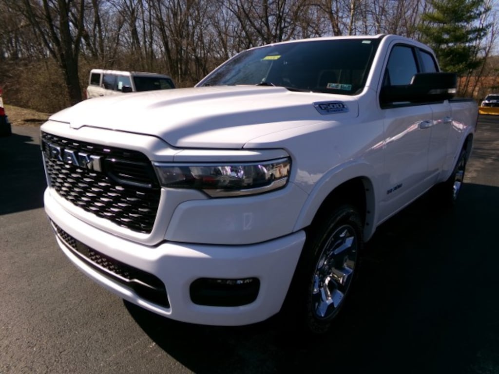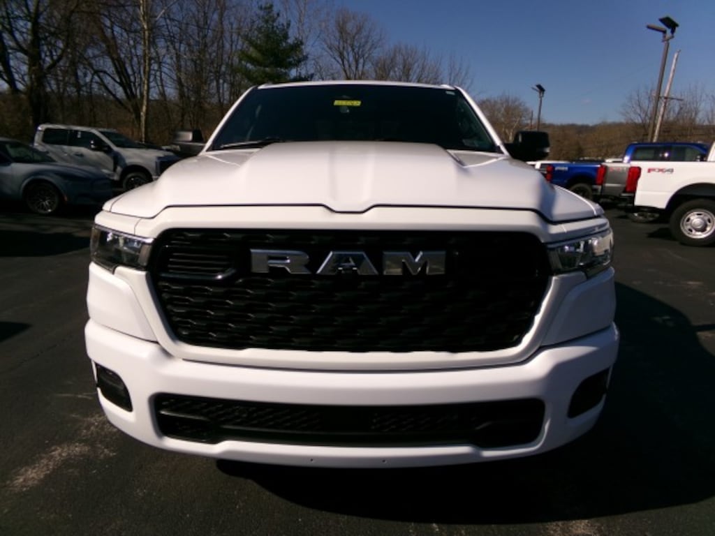 1-owner 2025 Ram 1500 Big Horn CrewCab 4x4 for sale in Bright White Clearcoat with Black cloth bench seating, powered by a 3.6L V6 eTorque engine paired with an 8-speed automatic transmission for a balance of efficiency and capability. Equipped with 20-inch chrome wheels, all-season tires, trailer brake control, and anti-spin rear differential, this Ram is ready for work or play. Interior comfort features include heated front seats and a heated steering wheel, making it a well-rounded, modern full-size pickup. Spacious CrewCab design, and strong towing capability make this a great choice for anyone searching for a Ram 1500 Big Horn 4x4 for sale. -ENGINE: 3.6L V6 24V VVT ETORQUE UPG, TRANSMISSION: 8-SPEED AUTOMATIC, WHEELS: 20-in CHROME, TIRES: 275/55R20 OWL ALL SEASON, PAINT: BRIGHT WHITE CLEARCOAT, SEATS: BLACK CLOTH BENCH SEAT, BIG HORN LEVEL 1 EQUIPMENT: Heated Front Seats, Heated Steering Wheel, Power-Folding Heated Mirrors w/Integrated Turn Signals, Driver/Passenger Illuminated Visor Mirror, Auto-Dimming Rearview Mirror, Universal Garage Door Opener, Leather Steering Wheel, Rear Defrost, Adjustable Pedals, Driver Adjustable Lumbar. 3.21 REAR AXLE RATIO, MOPAR MATS, TRAILER BRAKE CONTROL, ANTI-SPIN DIFFERENTIAL REAR AXLE, SPORT APPEARANCE PACKAGE, QUICK ORDER PACKAGE 23Z BIG HORN.- *For third party subscriptions or services, please contact the dealer for more information.*